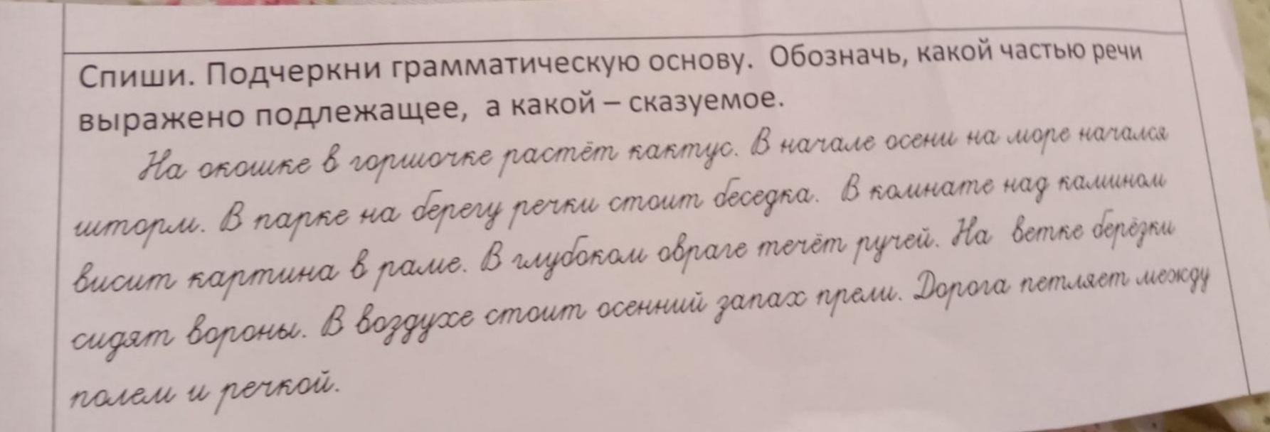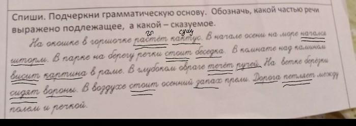 Подчеркни грамматическую основу. Обозначь, какой частью речи выражено подлежащее, а какой - сказуемое.