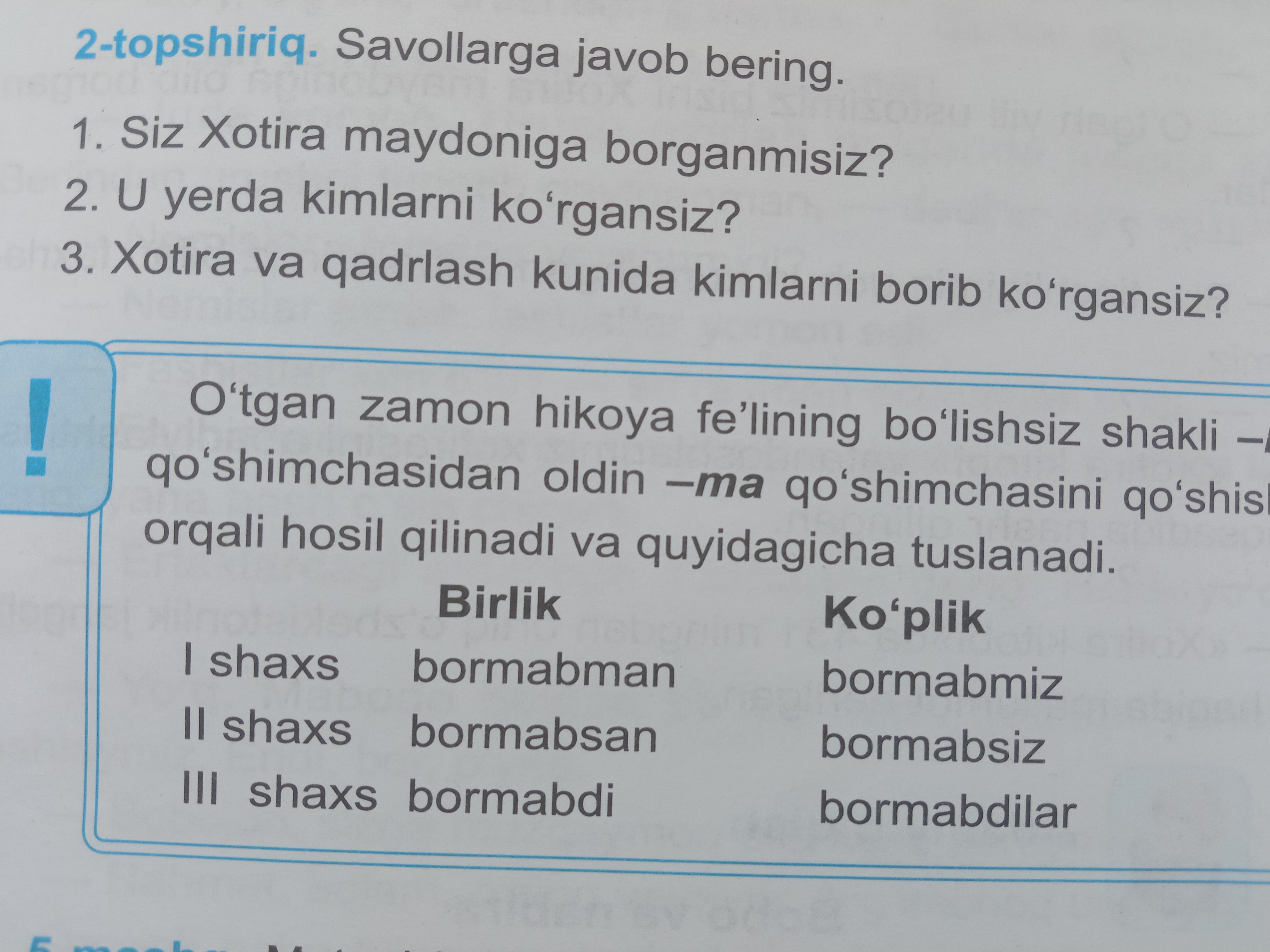 - Men maktabga bormabman. Biz maktabga bormabmiz.