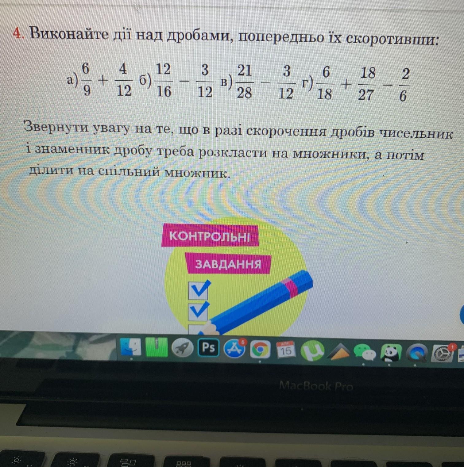 б) первую дробь на 4 и вторую дробь на 3; результат на 2.