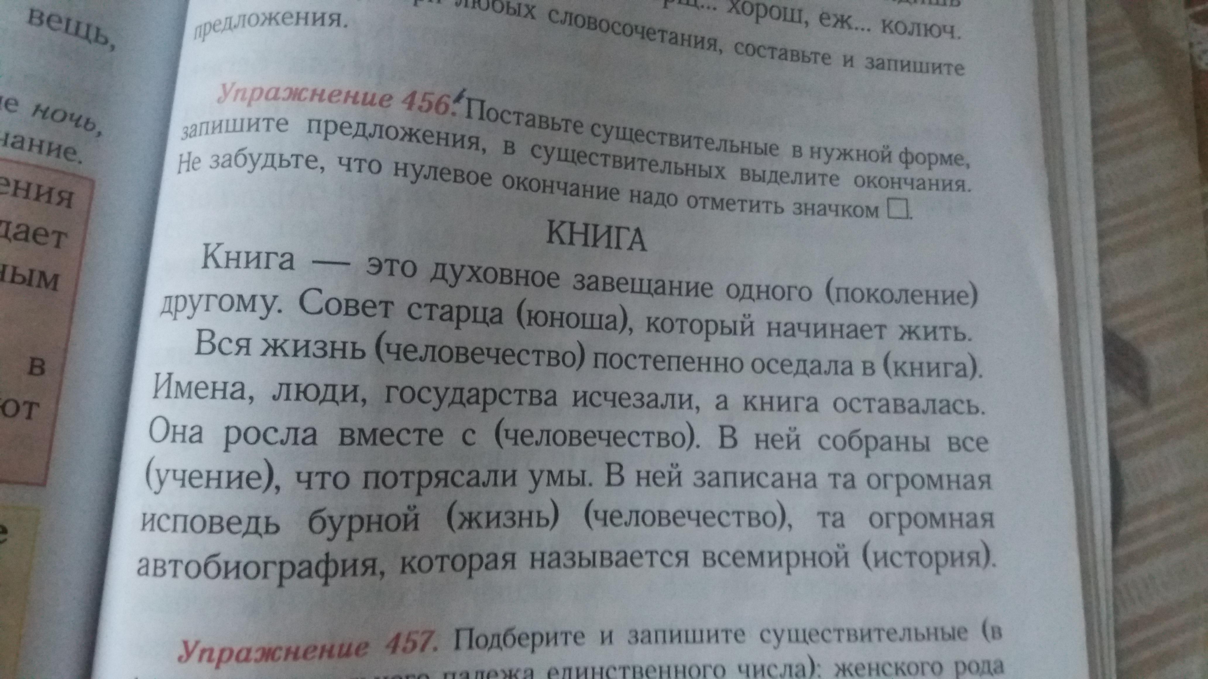 Поставьте существительные в нужной форме, запишитетпредложения, в существительных выделите окончания. Не забудьте, что нулевое окончаниеинадо отметить значком □.