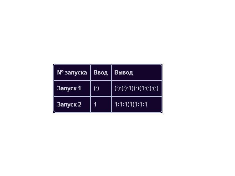 Запуск 1 (:) (:):(:):1)(:)(1:(:):(:)