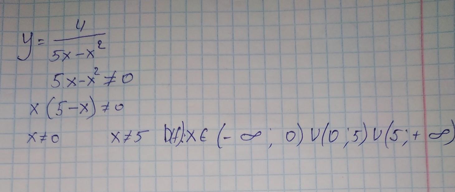 Проміжки від (-неск.до 0)U(0;5)U(5;+ неск.)