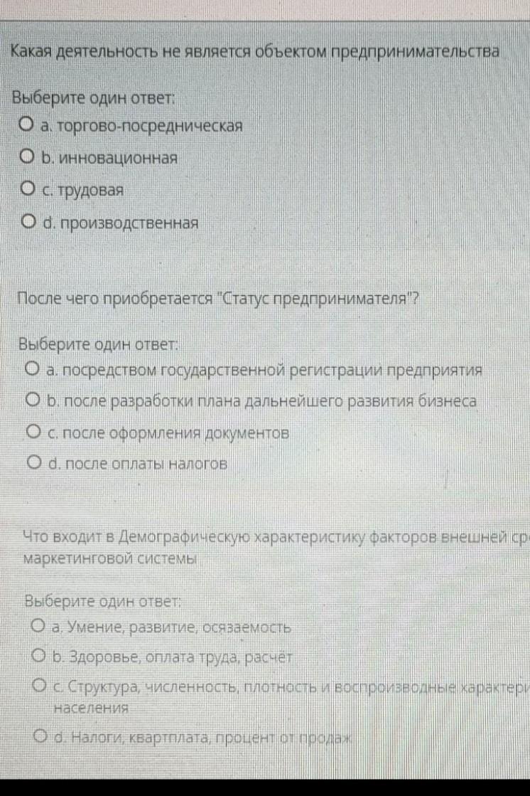 В первом вопросе трудовая, во втором посредством государственной регистрации предприятия, и в третьем структура, численность, плотность и воспроизводные характеры населения.