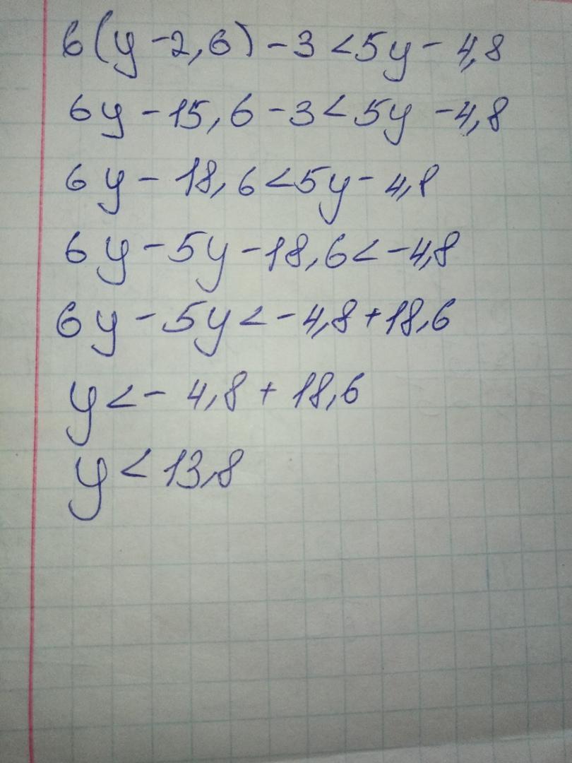 6(у-2,6)-3<5у-4,8 решите неравенство