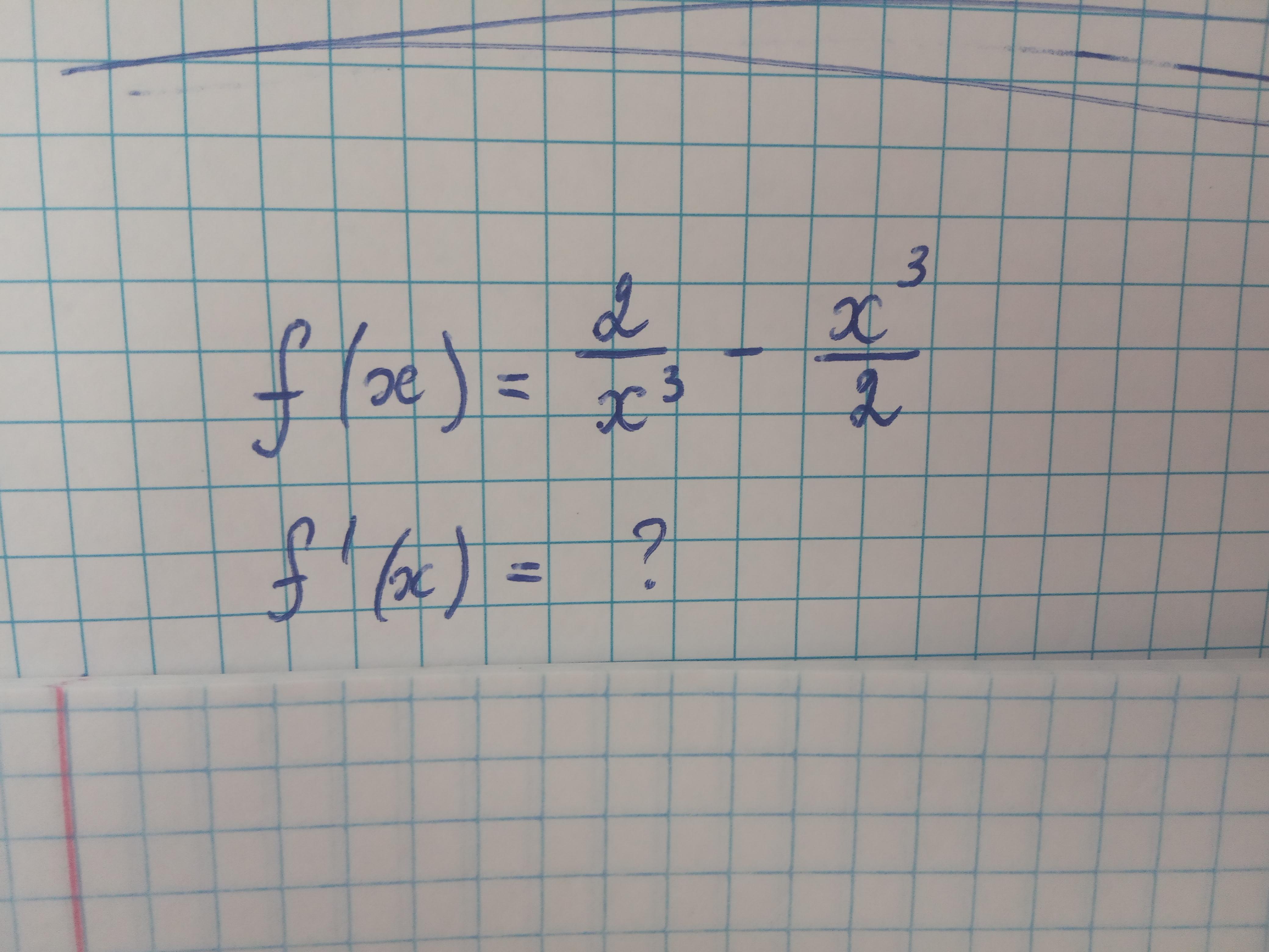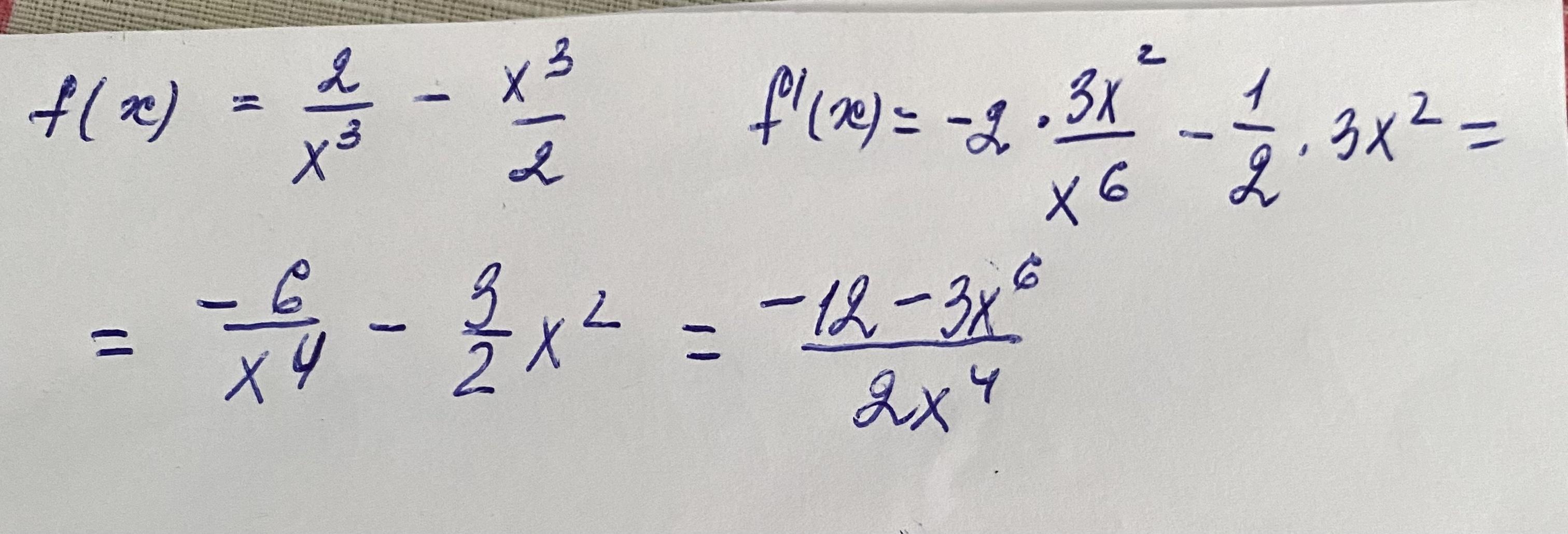 d/dx(2/x^3-x^3/2)=-6/(x^4)-(3/2)*x^2