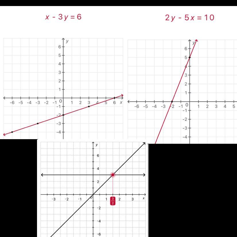 1)х-3у=6; 2) 2у-5х=10; 3) 2х=3.