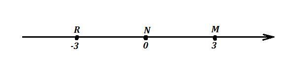 Если М(3) находится на расстоянии трёх единиц от точки N , то и точка R должна находиться на расстоянии трёх единиц от точки N , только с противоположной стороны. Значит координата точки R( -3) равна (-3) .