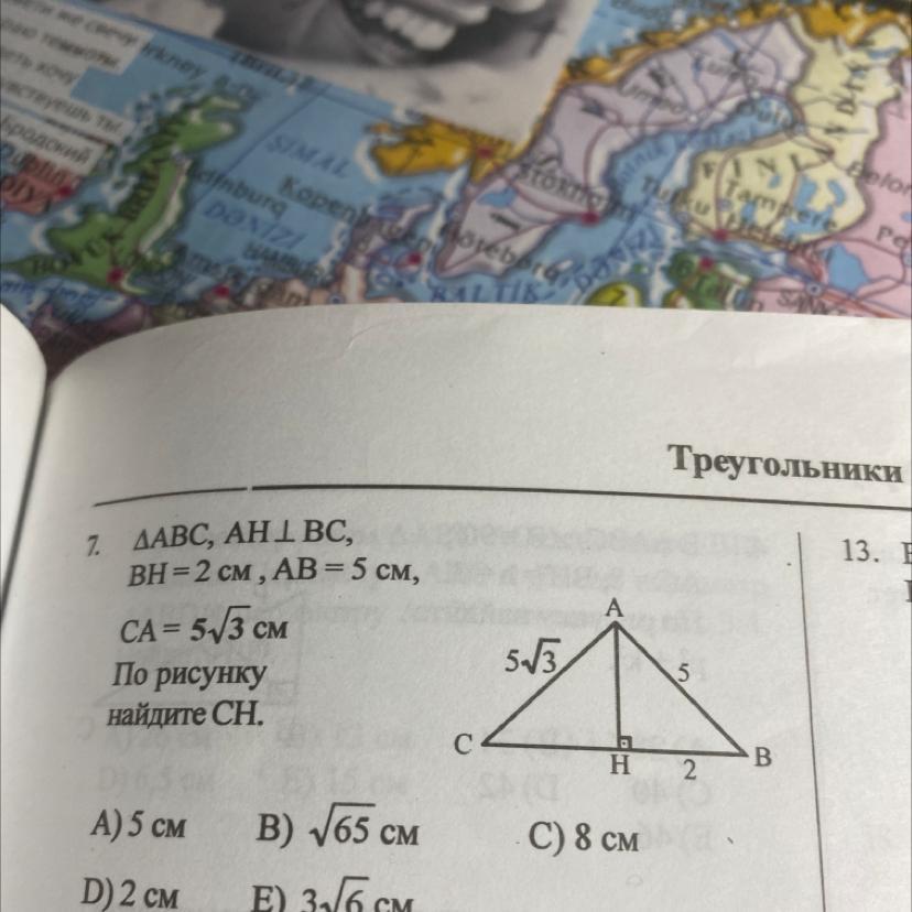 CH²=(5√3)²-(√21)²= 75-21 = 54