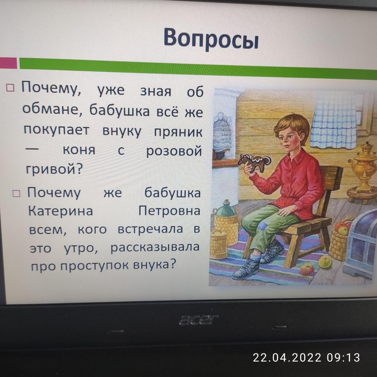 Катерина Петровна, бабушка главного героя рассказа Виктора Астафьева "Конь с розовой гривой", дала внуку пряник, несмотря на серьезный проступок мальчика. Катерина Петровна - мудрый человек, и она поняла, что Витя искренне раскаялся в своем поступке. Для нее наказание - не самоцель, а лишь средство воспитания. Поэтому Катерина Петровна не стала наказывать внука. Наоборот, она дала ему обещанный пряник, тем самым показав, что она его любит. И оказалась права: в конце рассказа автор упоминает, что он не забыл того коня с розовой гривой, хотя с тех пор прошло уже много