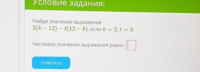 2(k — 12) – t (12 – k), если k = 2, t = 8.