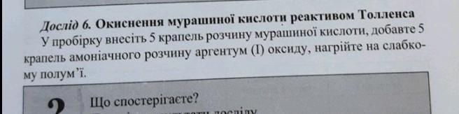 при реакції муравинної кислоти з реактивом Толленсу відбувається виділення на стінках пробірки сріблястого нальоту