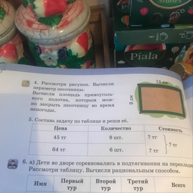 Рассмотри рисунок. Вычисли периметр песочницы