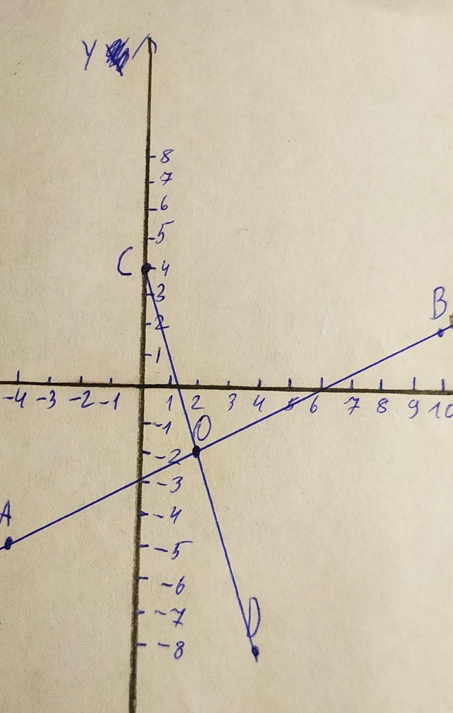 (Я назвала пересечение АВ и СD точкой О)