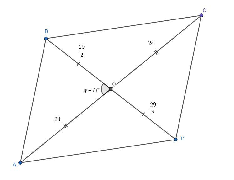 Вычислить длинну сторон паралллелограма,если стороны d1=29