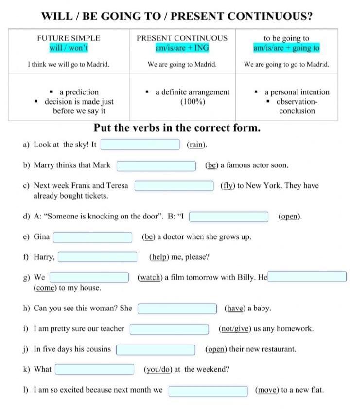g) are going to watch; is coming