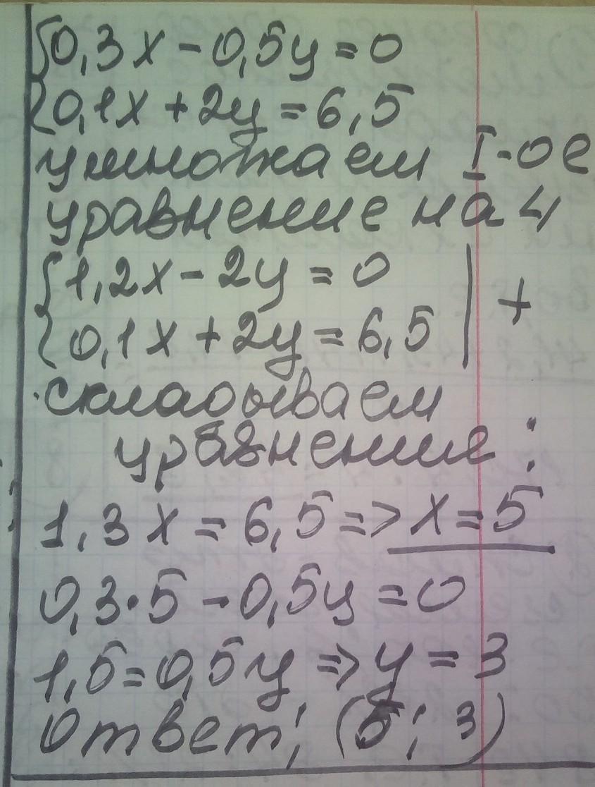 0,3х - 0,5у = 0 | * 4