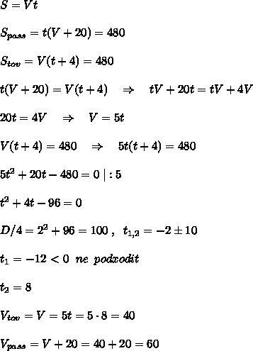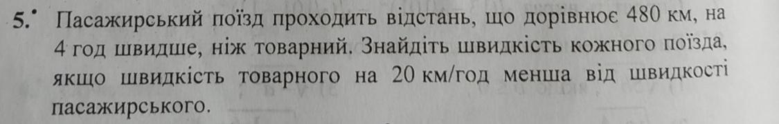 Швидкість пасажирського поїзда = V+20 (км/год)