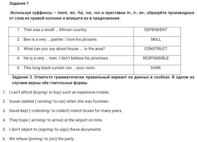 1. 1 ... independent country 2. ...skillful painter 3. construction 4. irresponsible 5. darken your room.