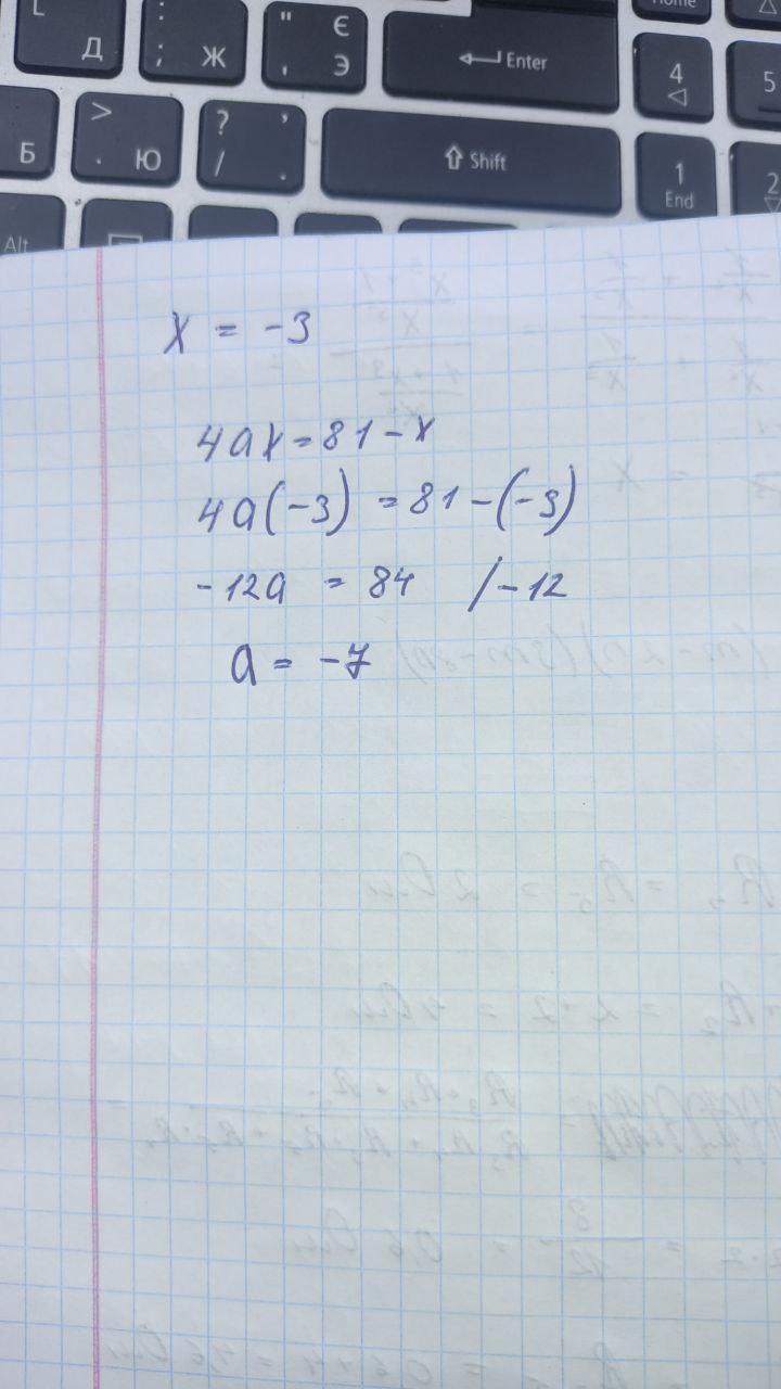 При каком значении a уравнение 4ax=81-x имеет корень,равный числу-3