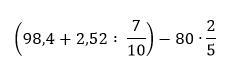 Ответ : (98,4+2,52:7/10)-80*2/5=70