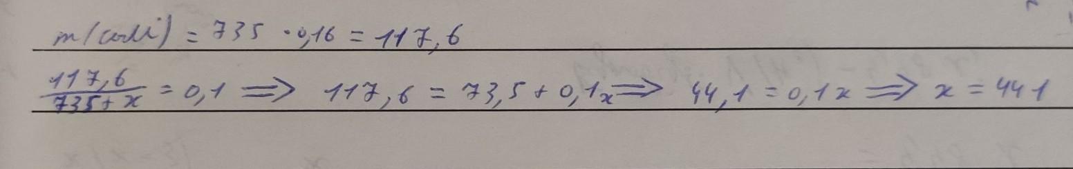 Скільки води треба долити до 735 г 16% розчину солі у воді, щоб одержати 10% розчин?
