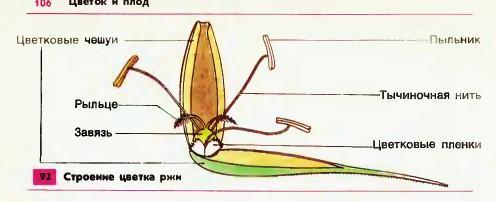 рыльце, завязь, пыльник, цветовые чешуи, тычиновая нить, цветовые пленки,