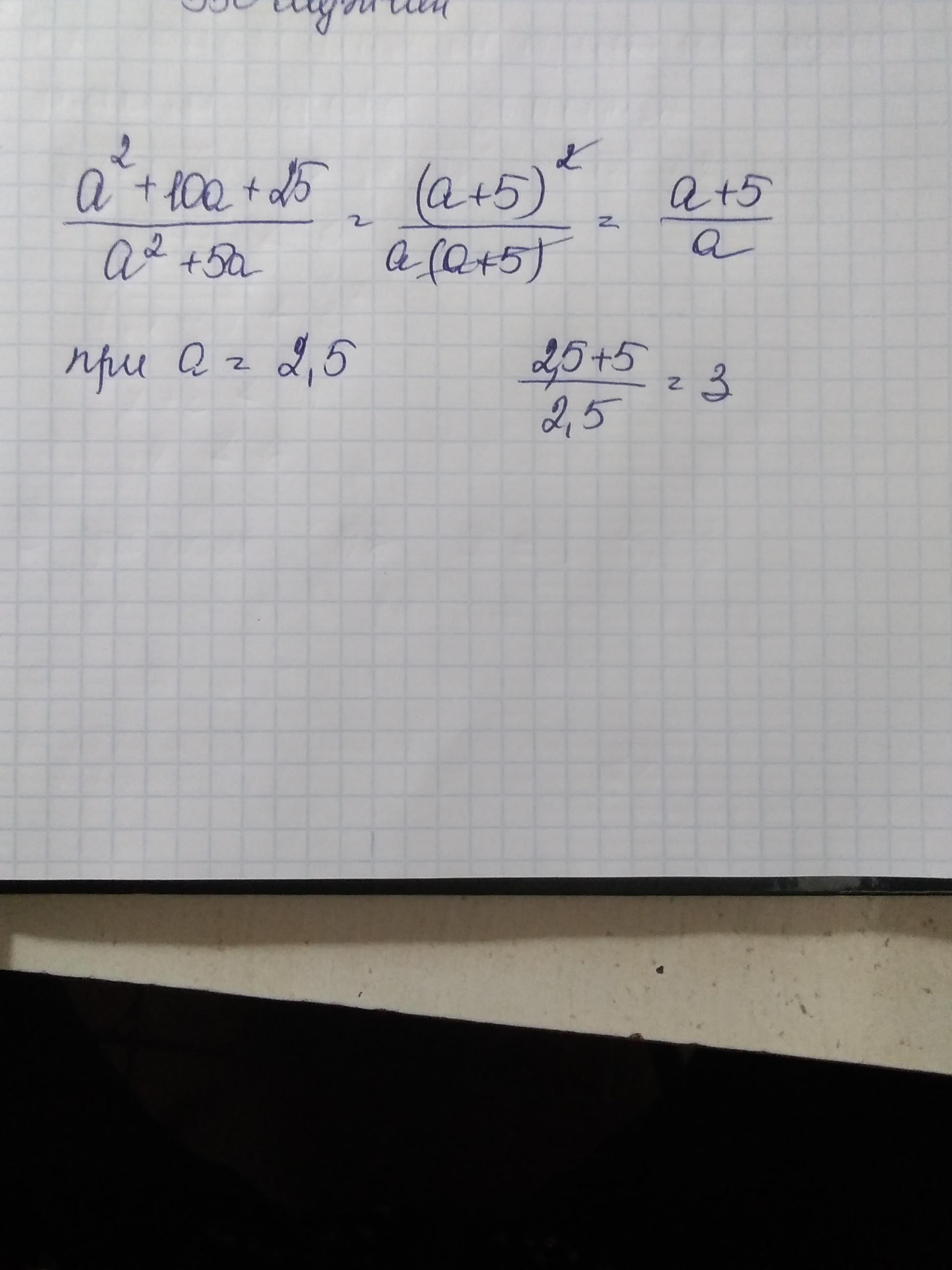 a^2+10a+25 дробь a^2+5a при a=2,5