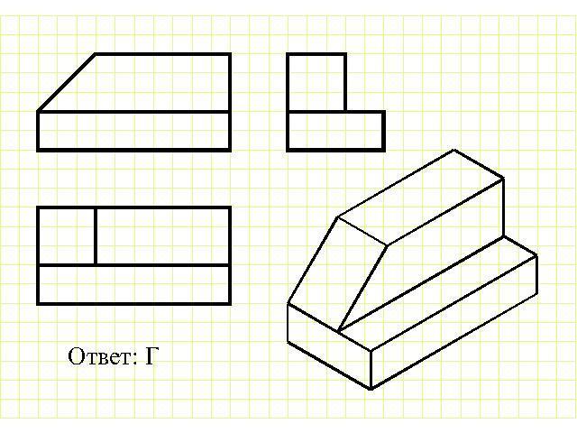 1) Рассмотреть рисунок на фото и обозначить правильное изображение профильной проекции детали.