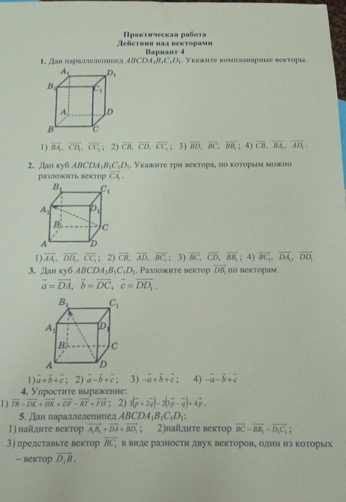 1. Дан параллелепипед ABCDA1 B1 C1 D1 Укажите компланарные векторы.