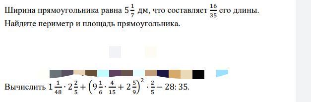 1) Ширина прямоугольника = 5 1/7 дм = 36/7 дм;