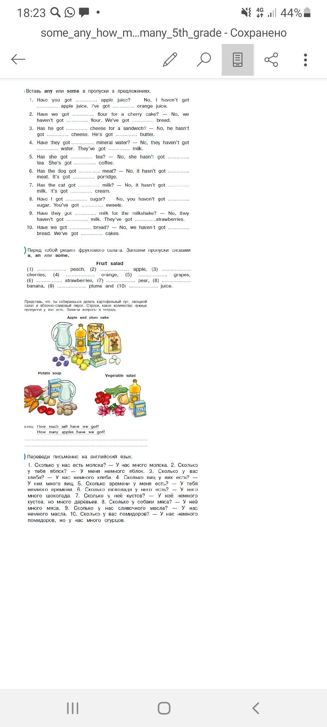 4)How much milk have we got? We have a lot of milk. How many apples have you got? I have some apples. How much bread have you got? We have some bread. How many eggs have they got? They have got a lot of eggs. How many times have me got?