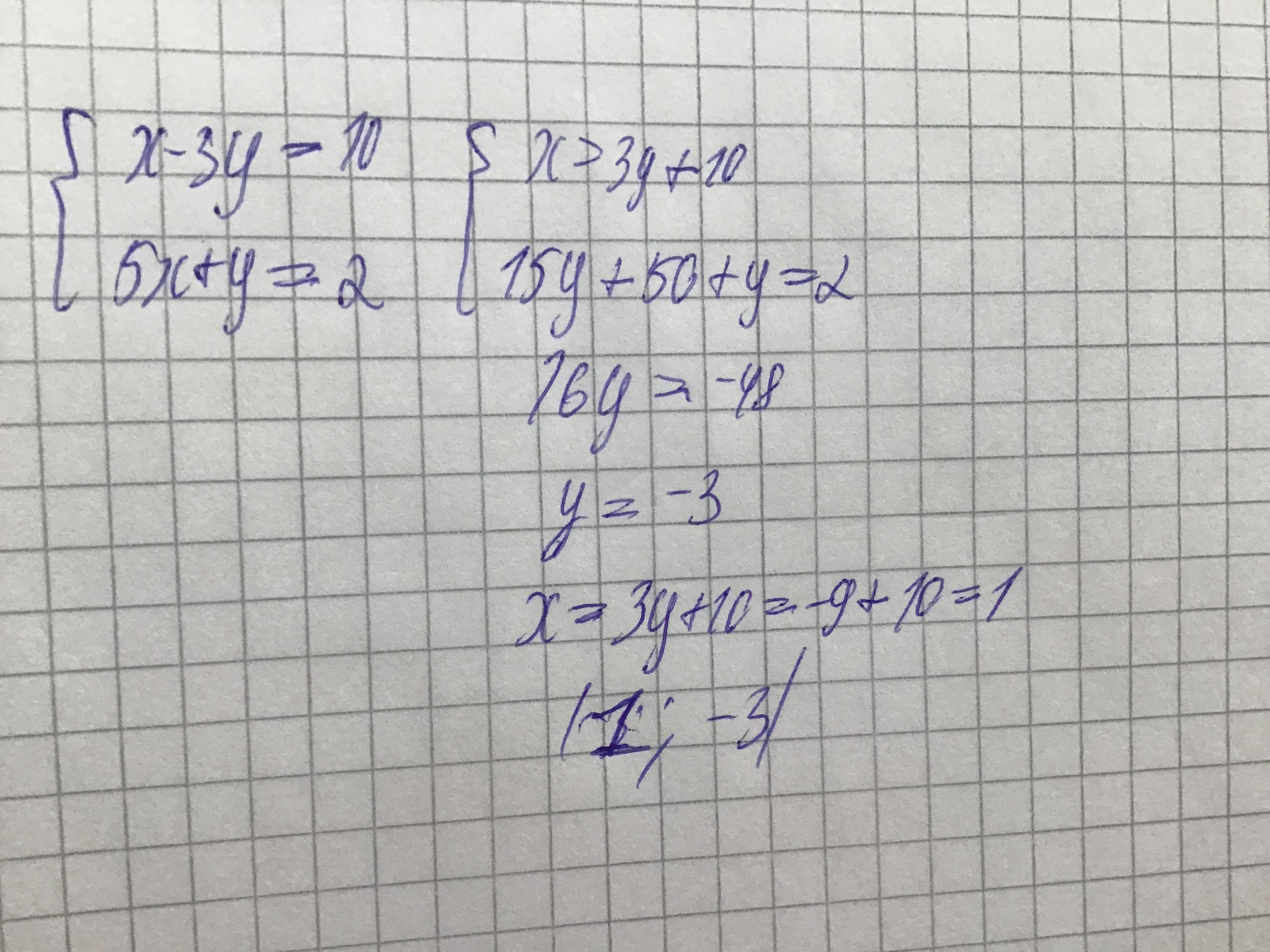 розв'яжіть рівняння способом підстановки х-3у=10}