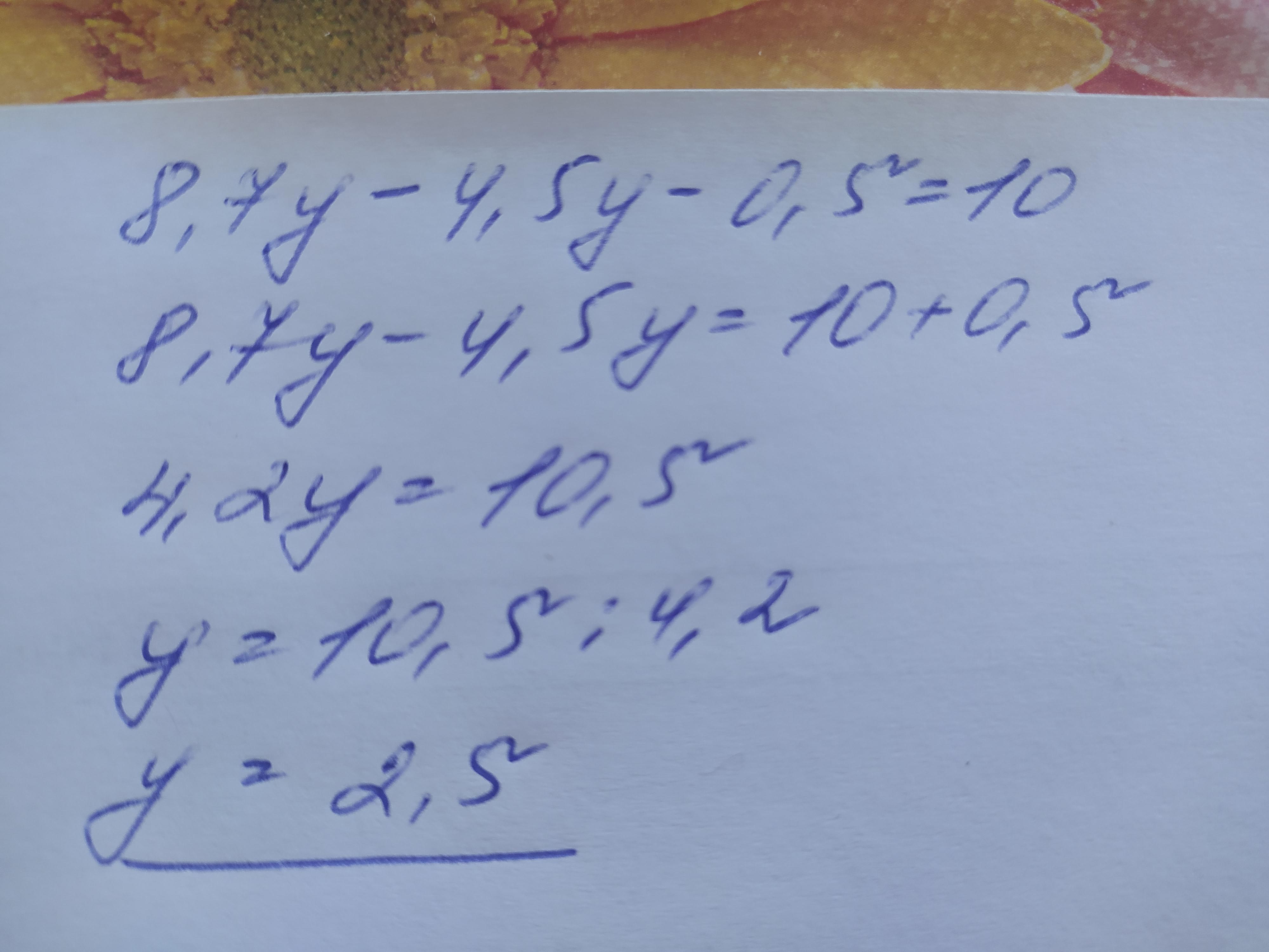 3. Решите уравнение: 8,7у - 4,5у – 0,5 = 10