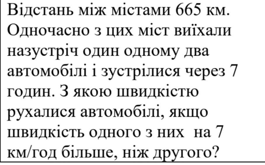 дальше нам потрібно взнати скільки другий автомобіль км проїхав за годину. на 7км/год більше , ніж другий тому ми