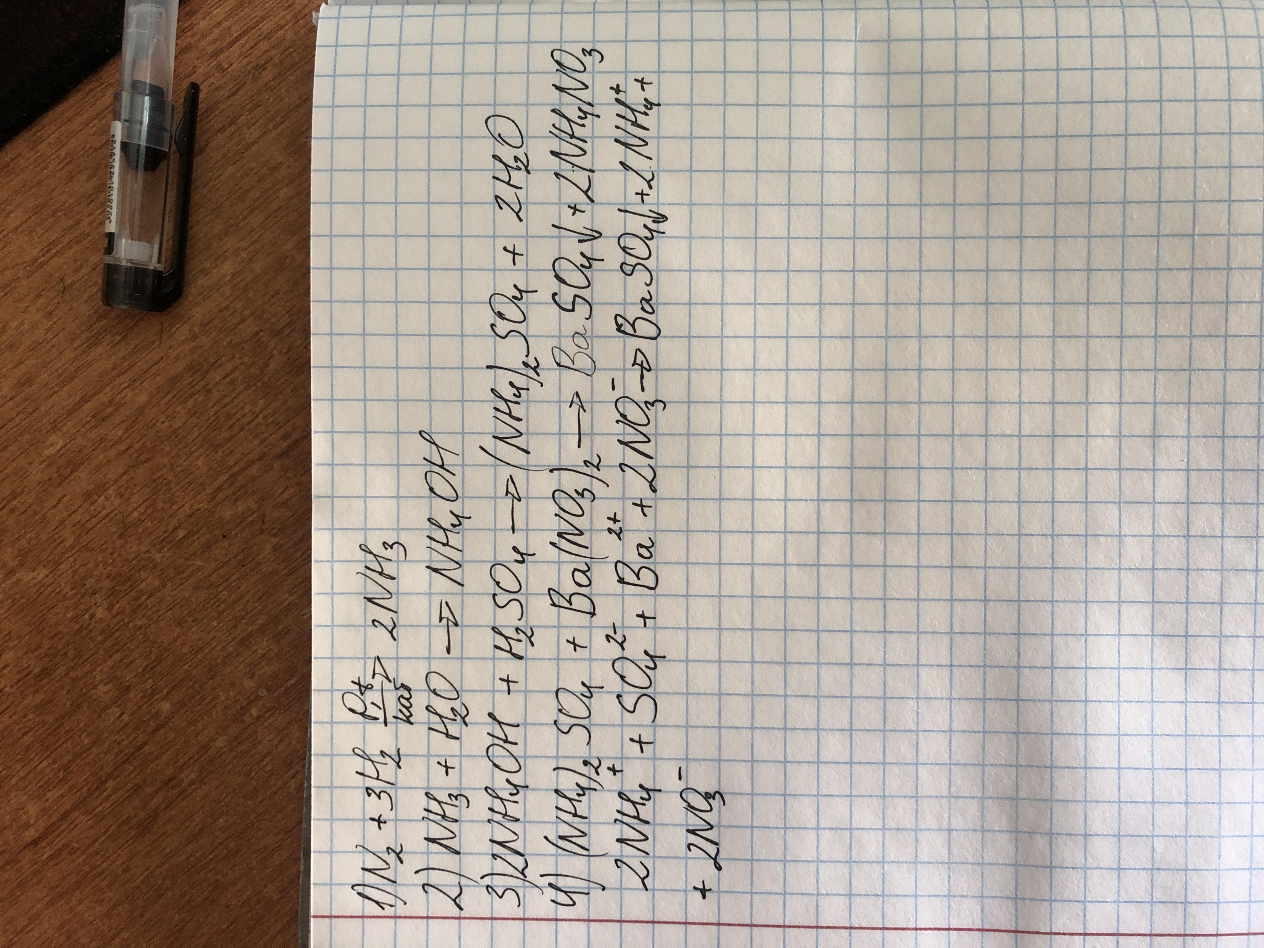 N2 1→ NH3 2→ NH4OH 3→ (NH4)2SO4 4→ BaSO4
