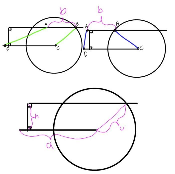 нижняя картинка - как строим, сверху 2 варианта получившейся трапеции, розовым отмечены длины, которые мы даём отрезкам про построении(с - радиус окружности)