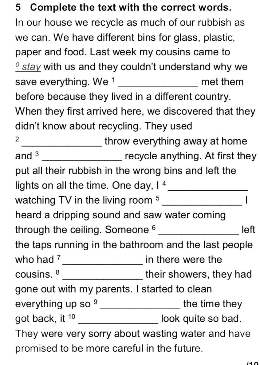 3 didn't (они всё выбрасывали и ничего не собирали для переработки, речь о прошлом, поэтому Past Simple)
