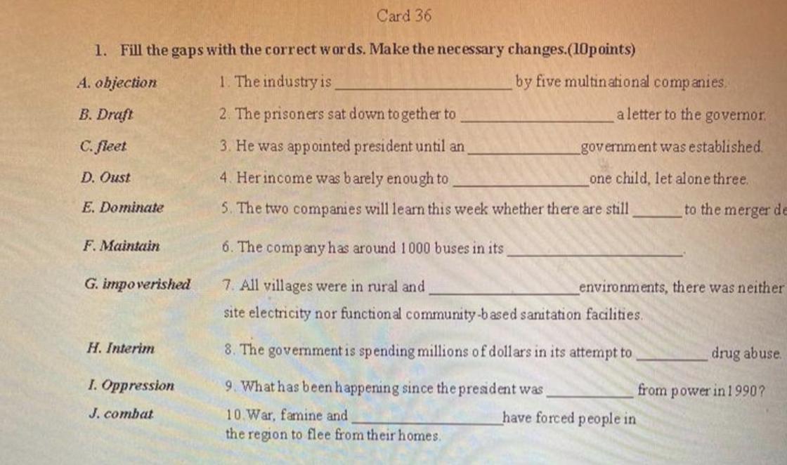 7 impoverished (обедневшие)