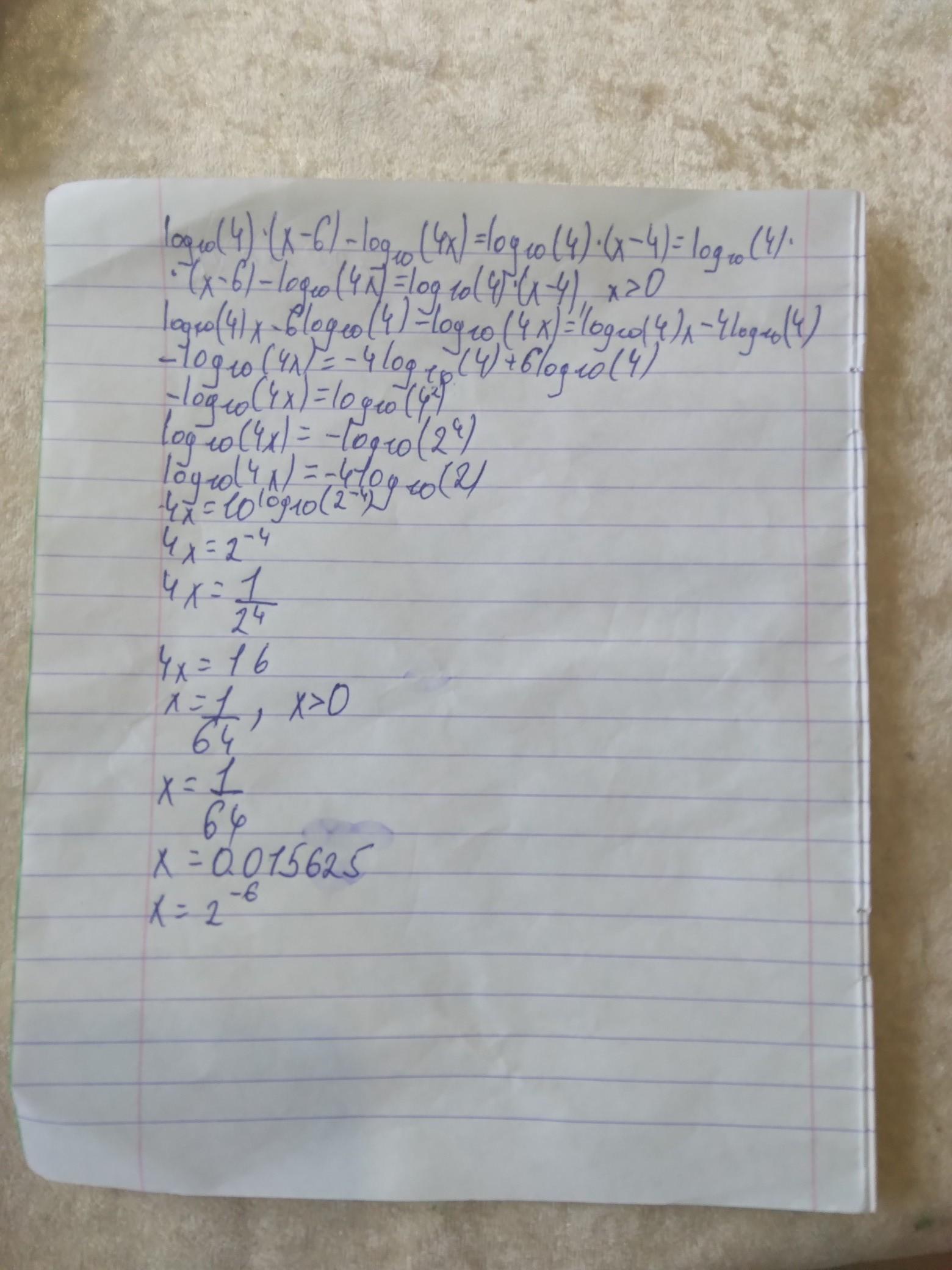 log4(x-6)-log4x = log4(x-4)