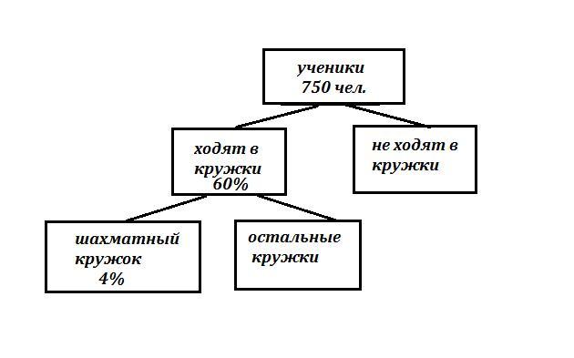 Из 750 учеников посещают кружки 60% человек , то есть это составляет человек .