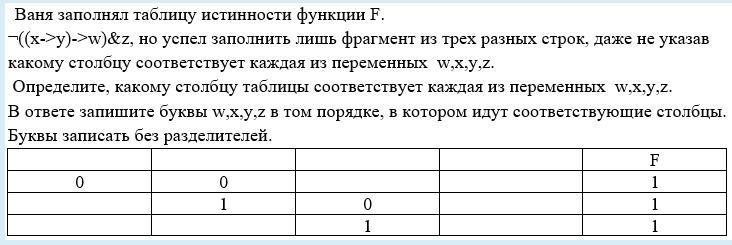 Сначала надо посмотреть на самый правый фрагмент &z. Поскольку у нас дано F=1 для всех трех строк, то надо, чтобы z=1 для каждой строки таблицы. Это возможно только в последнем столбце, так как в других где-то да есть 0. Тогда значение переменной z и ее положение в таблице определяются однозначно.