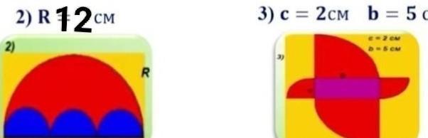 3) Две четверти круга составляют полукруг. Площадь красной фигуры равна сумме площадей двух полукругов с радиусами R=5 см и r=2 см .