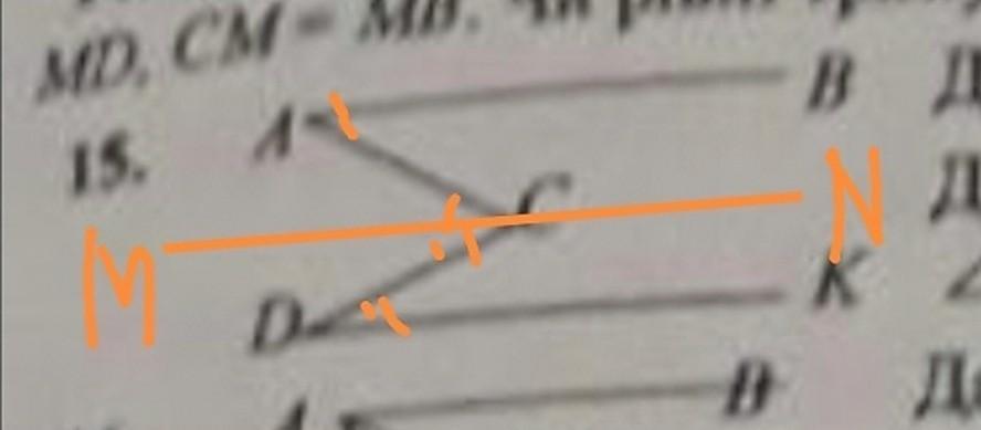 проведём прямую МN через точку С параллельно АВ и DK.