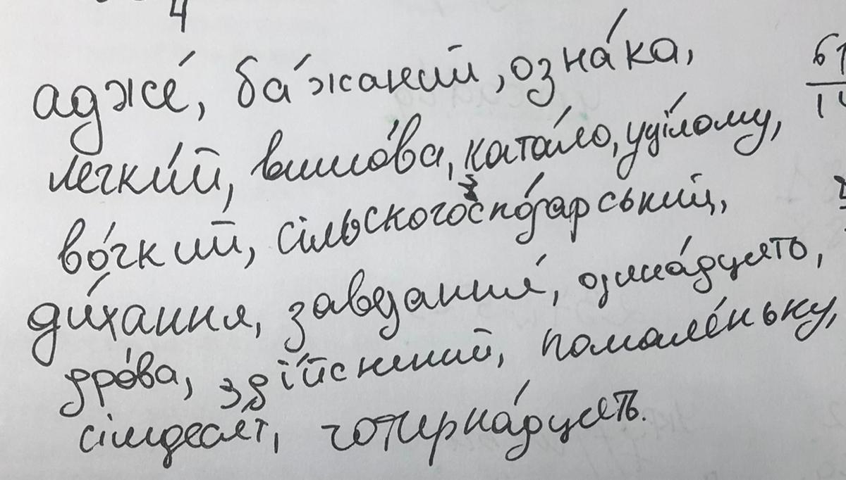 Поставте наголос у словах: адже, бажаний, ознака, легкий, вимова, катало, уцілому, вогкий, сільськогосподарський, дихання, завдання, одинадцять , дрова, здійснений, помаленьку, сімдесят, чотирнадцять