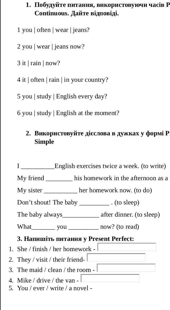 1. Encourage nutrition, vykoristovuochi hours of Present Simple or Present Continuous. Give me a video.