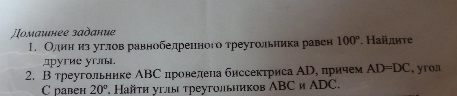 Дано: биссектриса-AD; AD=DC; угол C=20°.