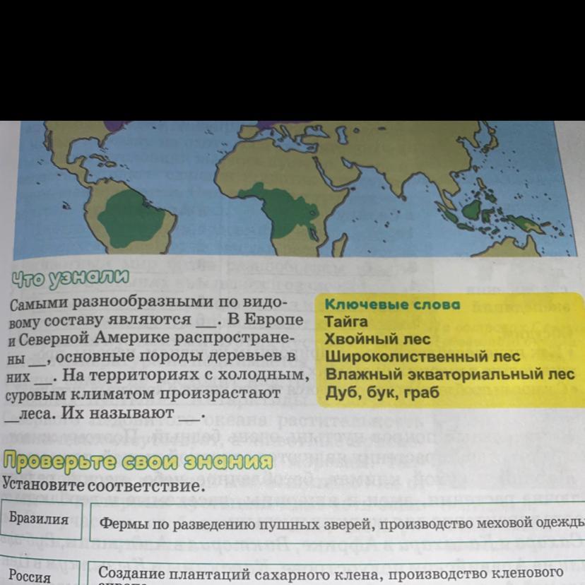 скорее всего 1 влажный экваториальный лес 2шыроколистый лес 3дуб бук граб 4 хвойный лес 5Тайга