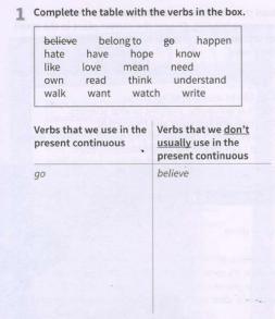 .1столбец :have, own, read , walk, watch, write. Остальные - во второй