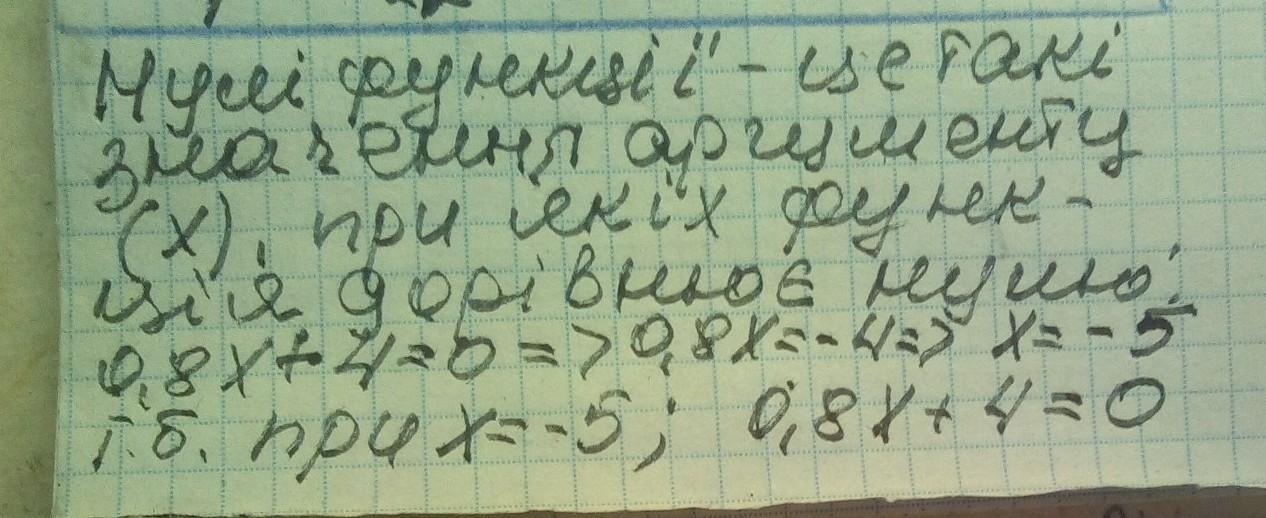 y=0.8x+4 вкажитт нули функции
