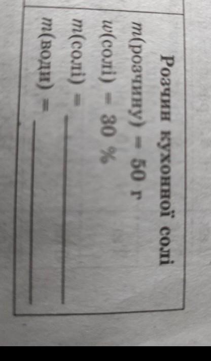 Розчин кухонної солі m(розчину) = 50 г w(солі) - 30 % m(солі) m(води)